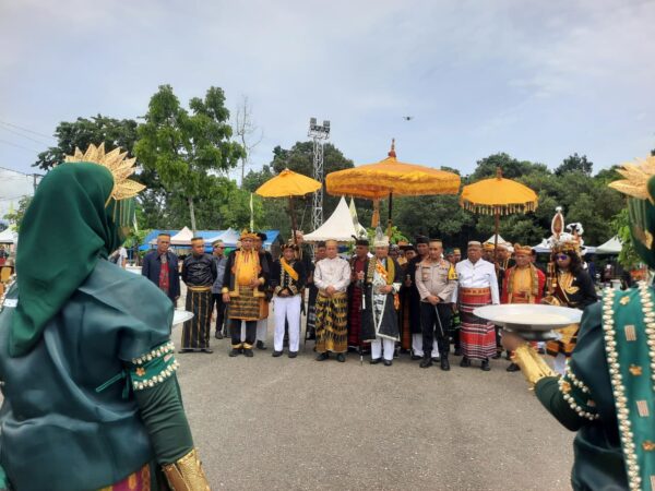 Morowali – Penyambutan Sultan Buton ke-41, Ir. La Ode Muhammad Sjamsul Qamar, berlangsung meriah dan sarat makna adat di Rumah Jabatan (Rujab) Bupati Morowali, Bungku.